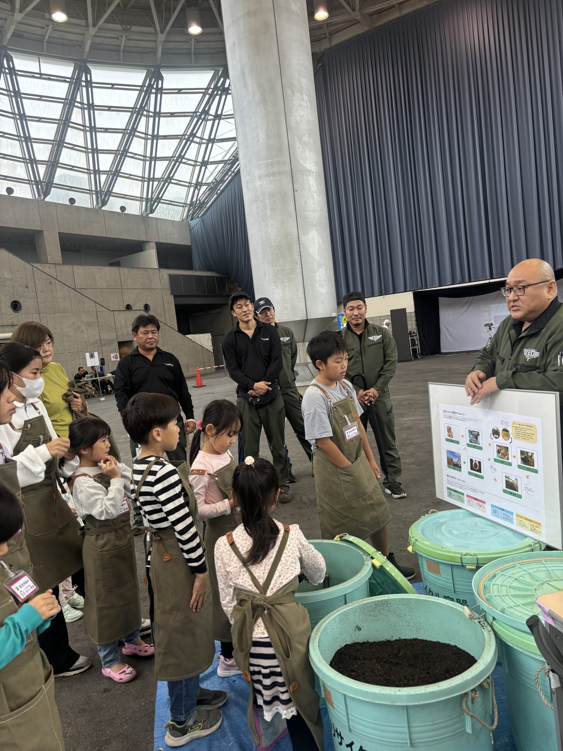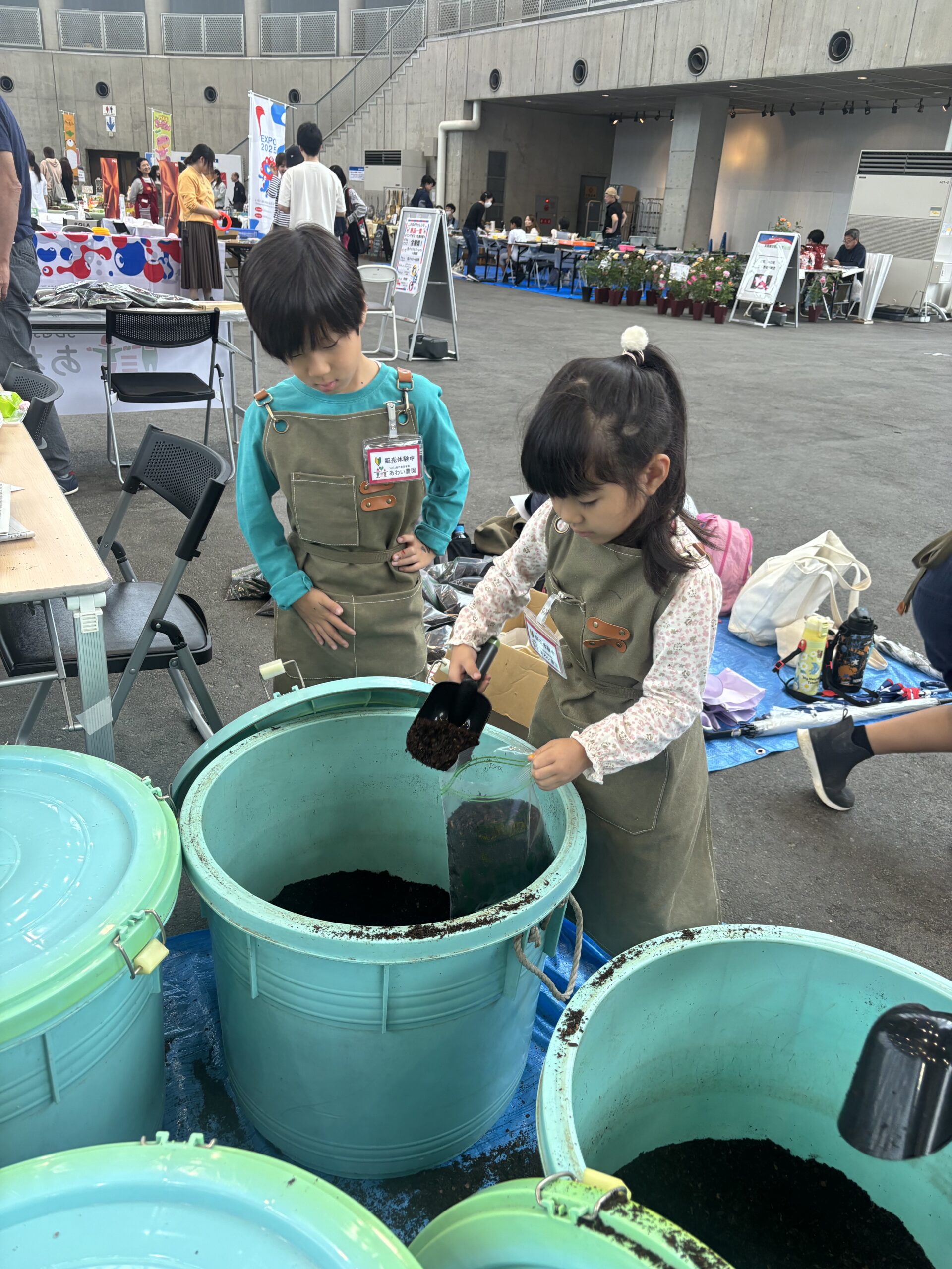 お客さんが少ないので、看板を書いたり、無料で配布する堆肥をたくさん小袋に詰めて、他のブースにPRにも行きました。