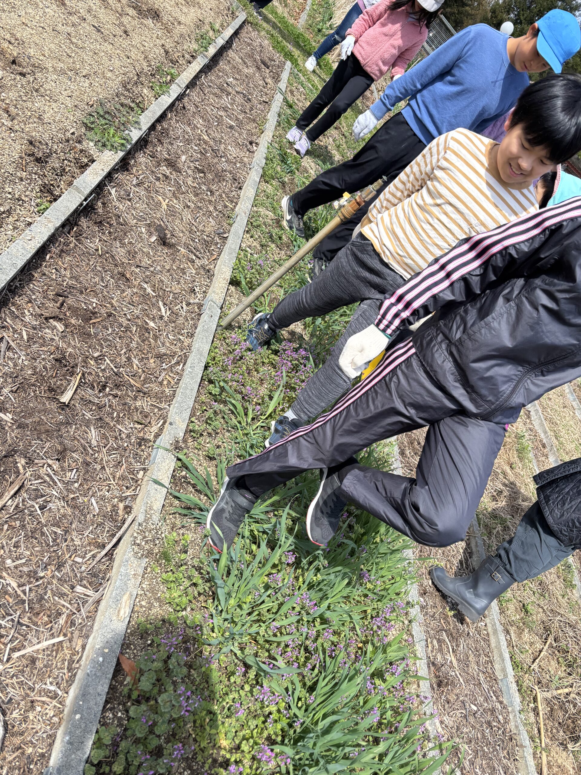ちょっと遅めの麦踏み。種をまいたのも遅かったから、今年はどこまで育つかな?穂が実らなくても緑肥として活用します。