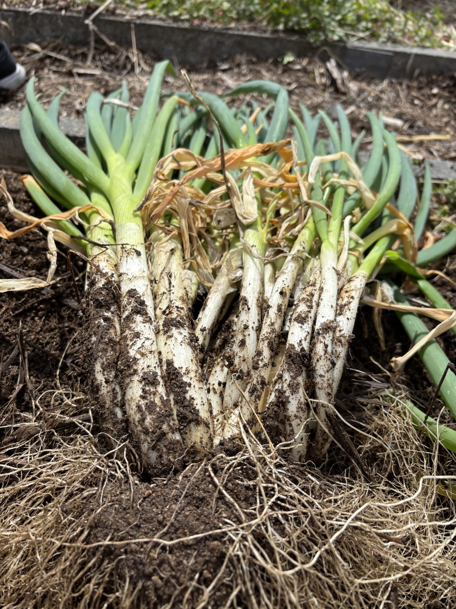 大きなネギはこれだけ根を張って頑張ってます。