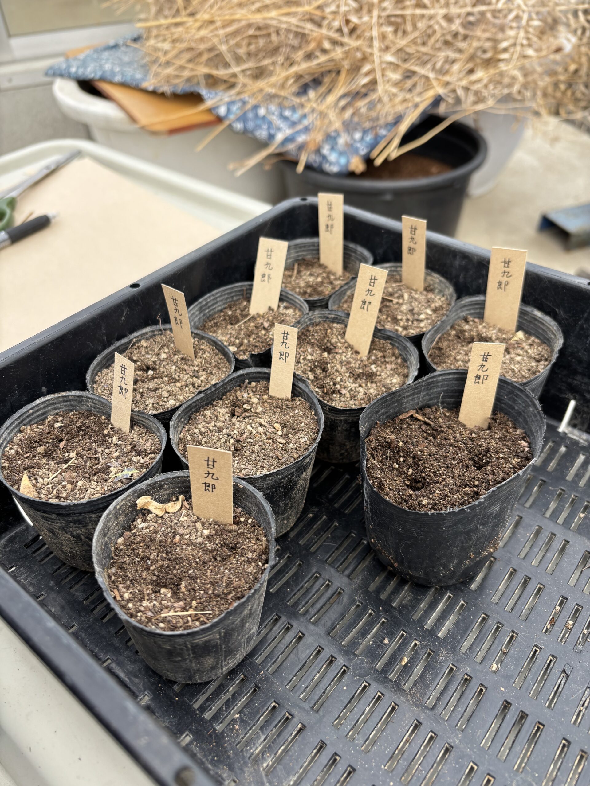 ヘチマの皮とりと、大豆の脱穀作業を同時に激しく!