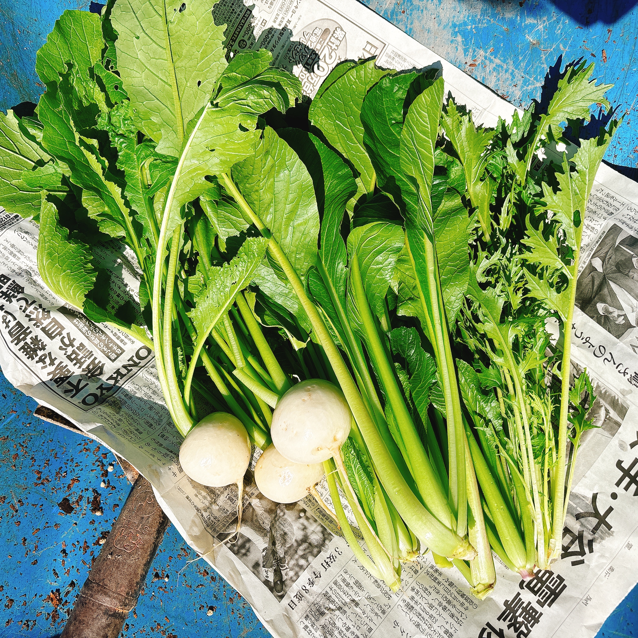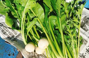 小松菜、カブ、水菜を少しずついただき、今日の作業は終了です。
