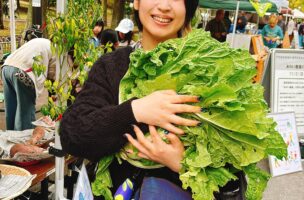 白菜、小松菜、水菜、葉っぱ付き大根も販売。