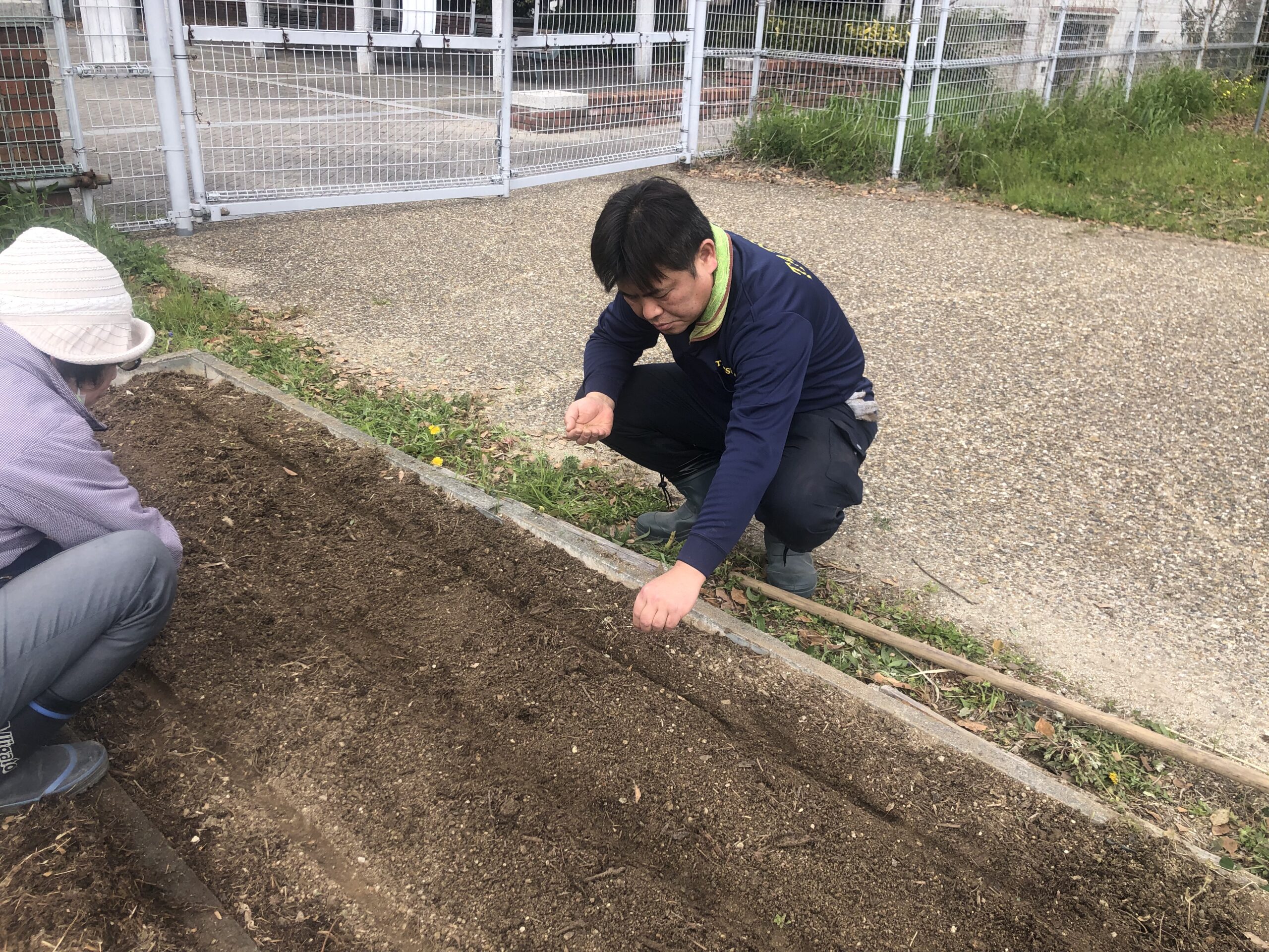 サポータさんと一緒にカラシナの種まきをしていただきました。