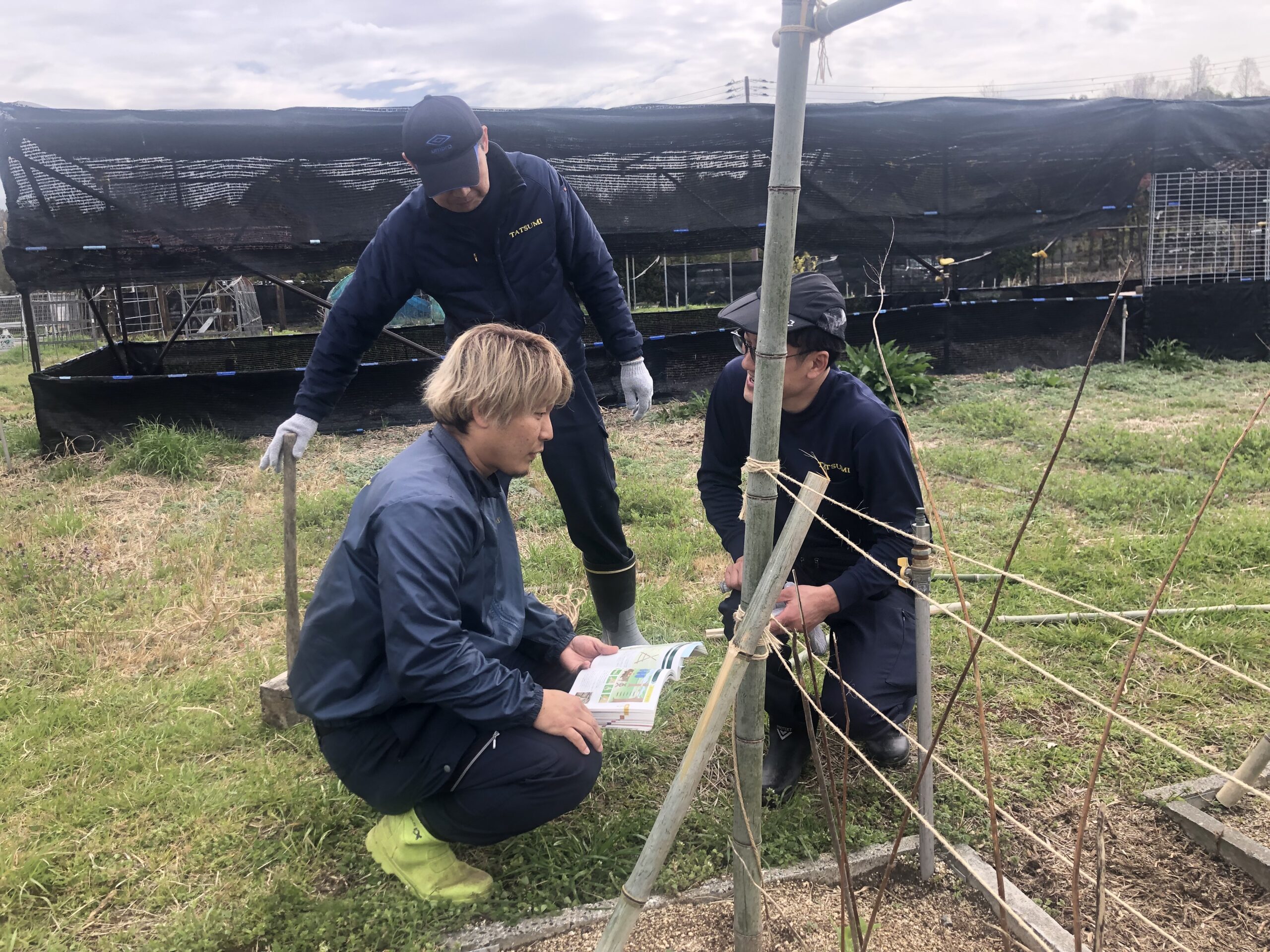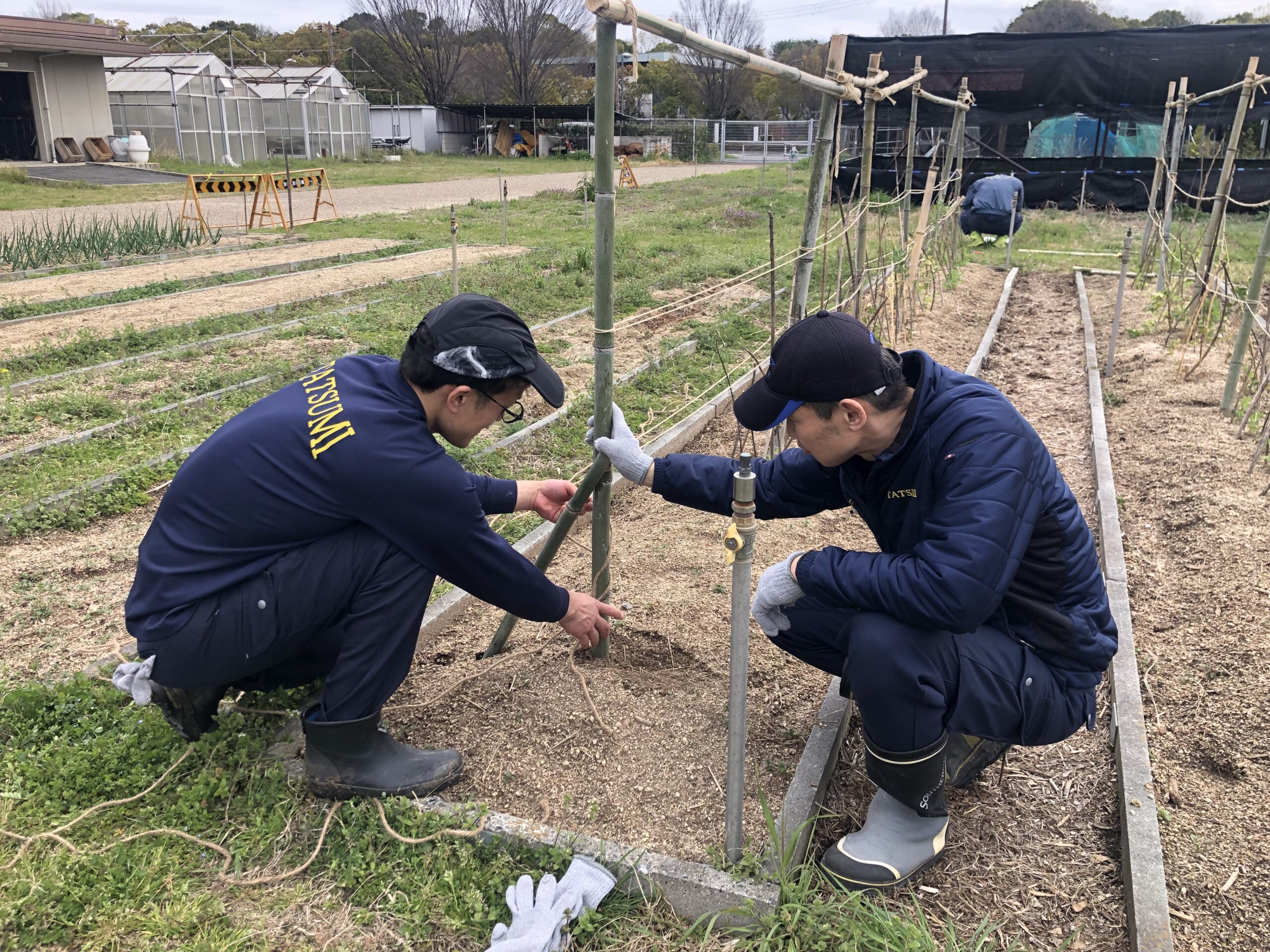 今日は、新人さんらで支柱の補強、