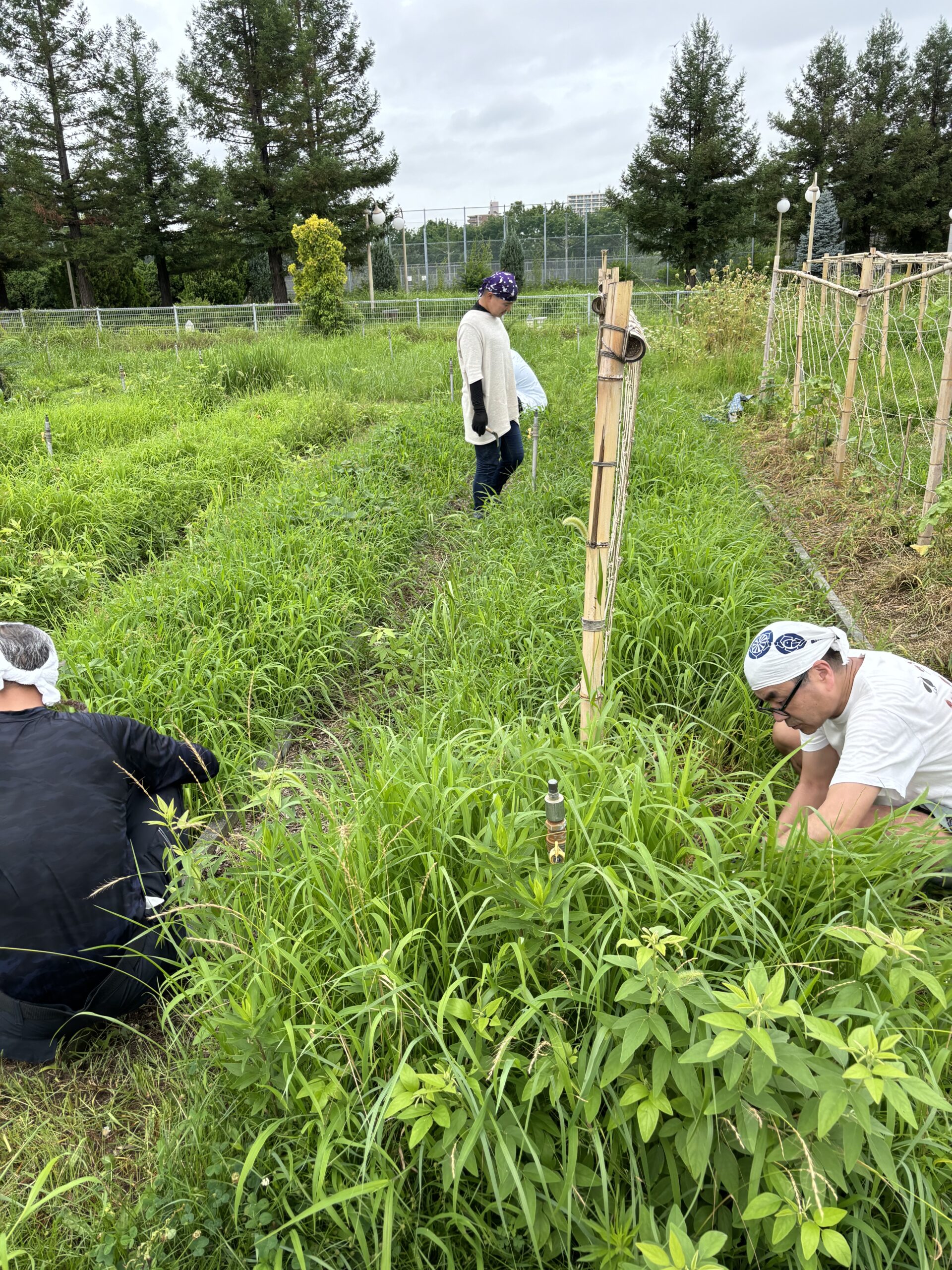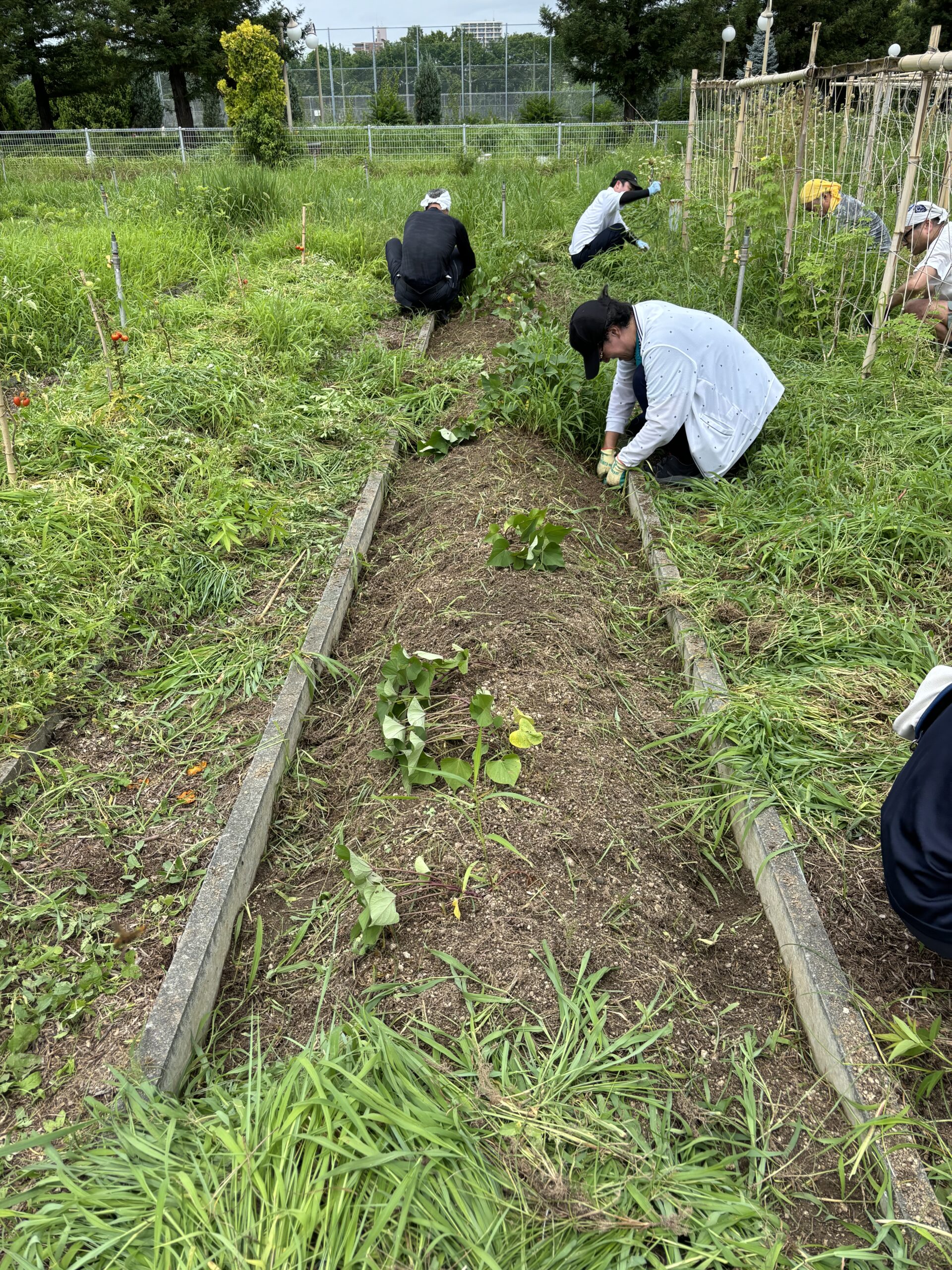 ピーマン、ゴーヤ、大豆、トウモロコシ、サツマイモを草から救出できました。