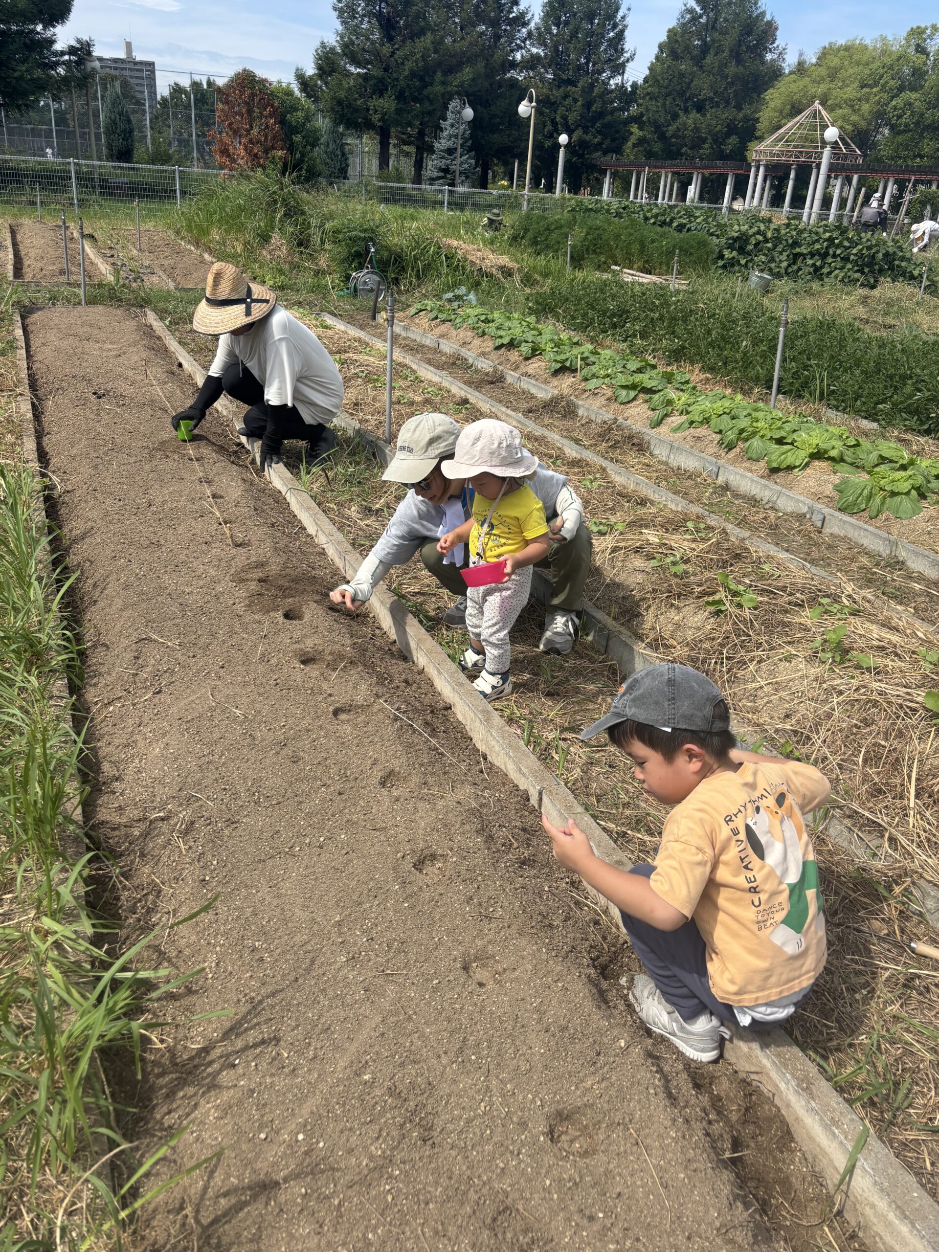水菜、カブラ、小松菜、春菊の種まきもして、