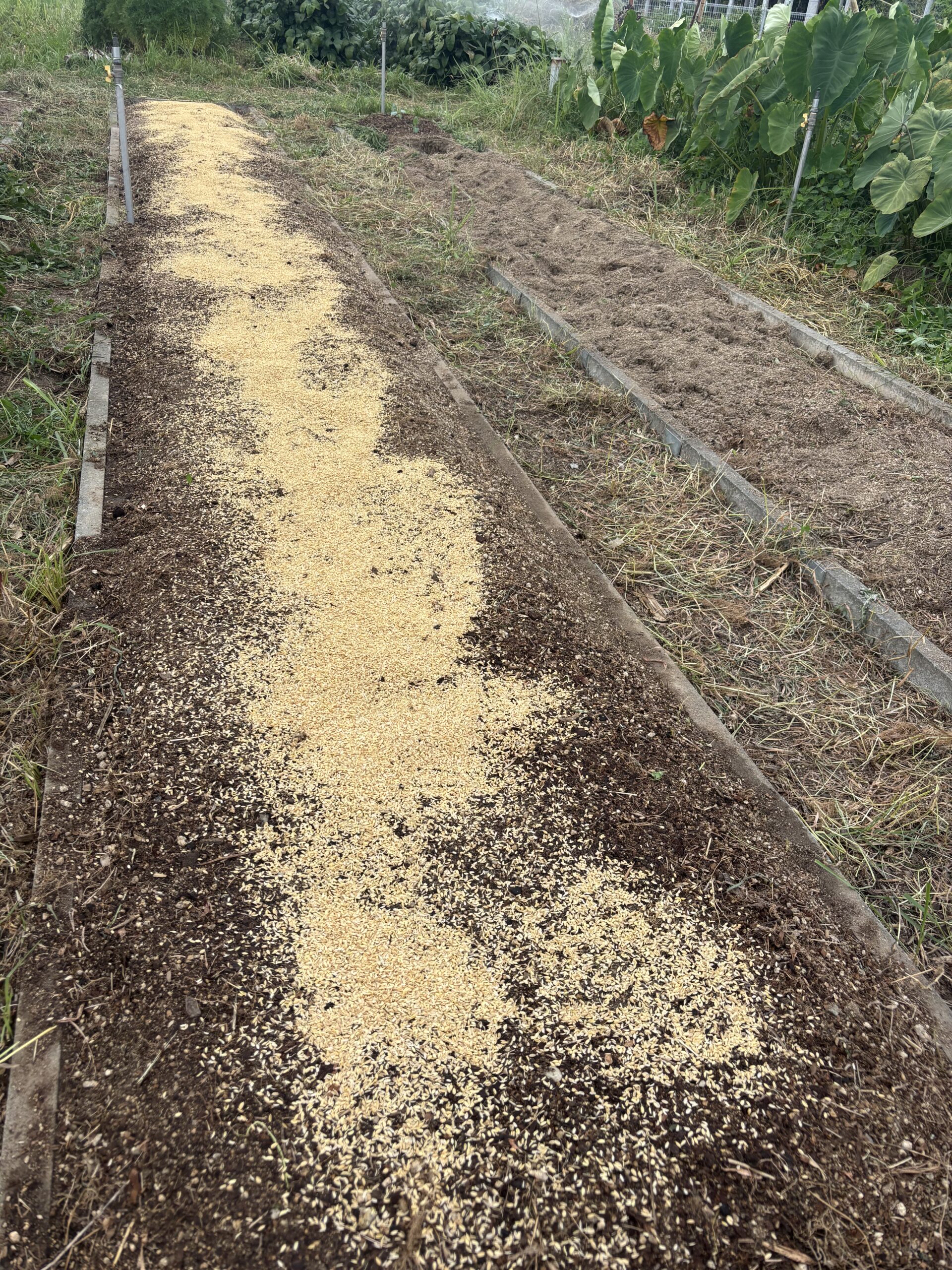 畝ができたら、大根の種まき。